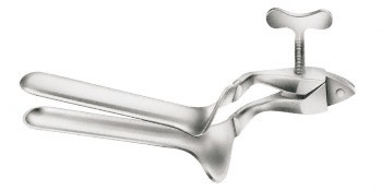 Het Collin vaginale speculum wordt voor een vaginaal onderzoek gebruikt.