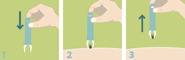 Verwijder de teek rustig in één beweging met een tekentang.