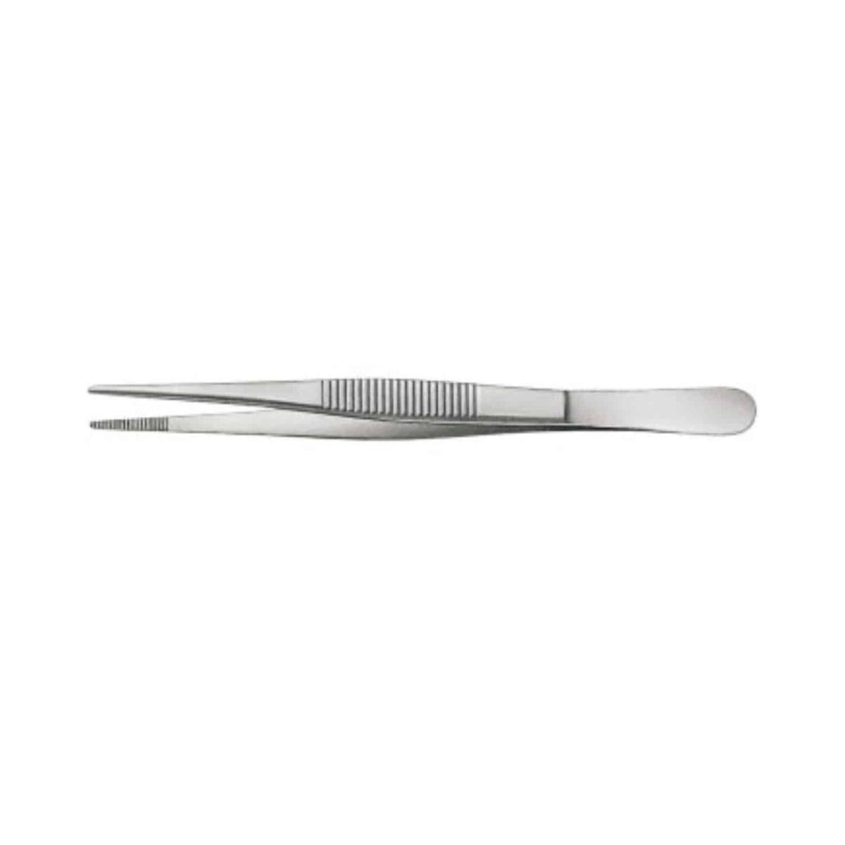 Pincet met geribbelde bek, die het mogelijk maken gevoelige weefsels en structuren voorzichtig te grijpen en vast te houden.