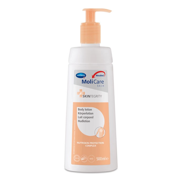 MoliCare® Skin care Bodylotion. Het Nutriskin Protection Complex verstrekt de barrièrefunctie van de gevoelige huid.