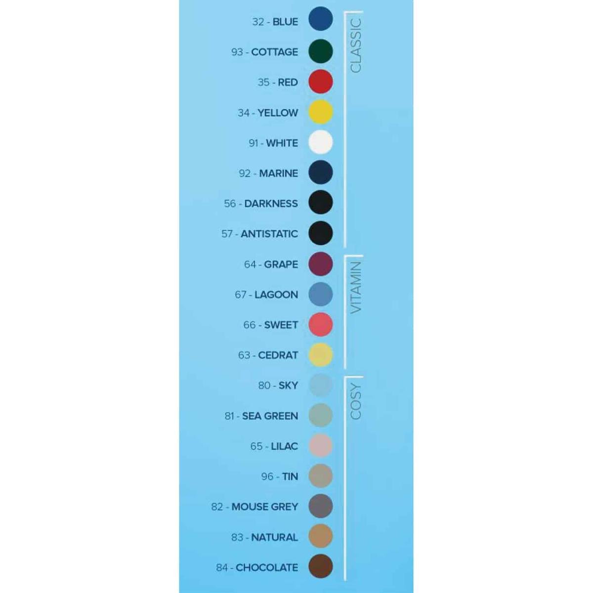 LIJST MET DIRECT LEVERBARE KLEUREN OP AANVRAAG VERKRIJGBAAR.